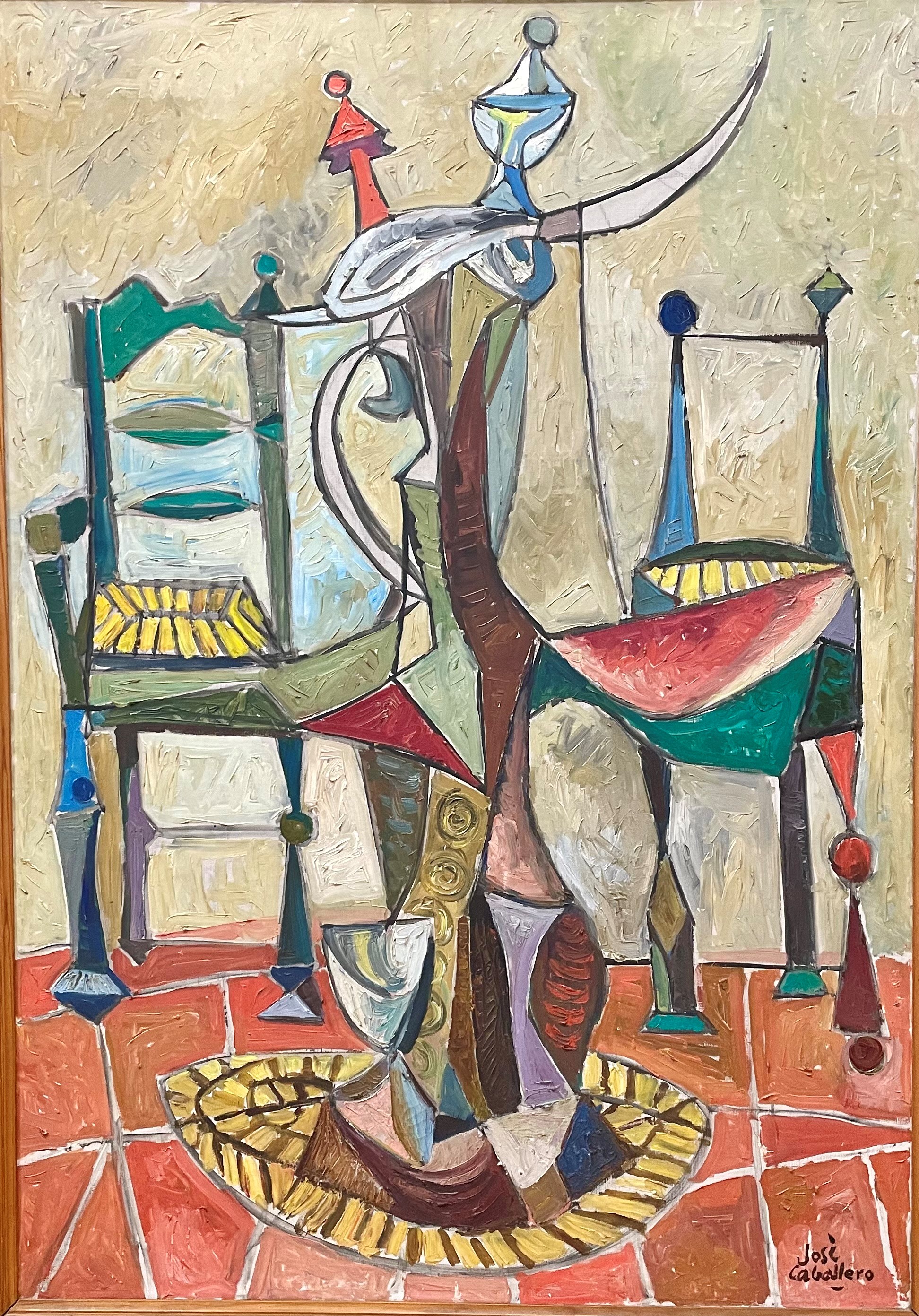 Esta obra se sitúa en un momento clave de la trayectoria del artista, marcado por el alejamiento del surrealismo ortodoxo de los años treinta y una consolidación de su lenguaje personal. Caballero explora aquí la intersección entre lo simbólico y lo doméstico, entre la modernidad formal y las raíces culturales andaluzas, con ecos de su vinculación con la Generación del 27 y su experiencia como escenógrafo que fue muy importante.
