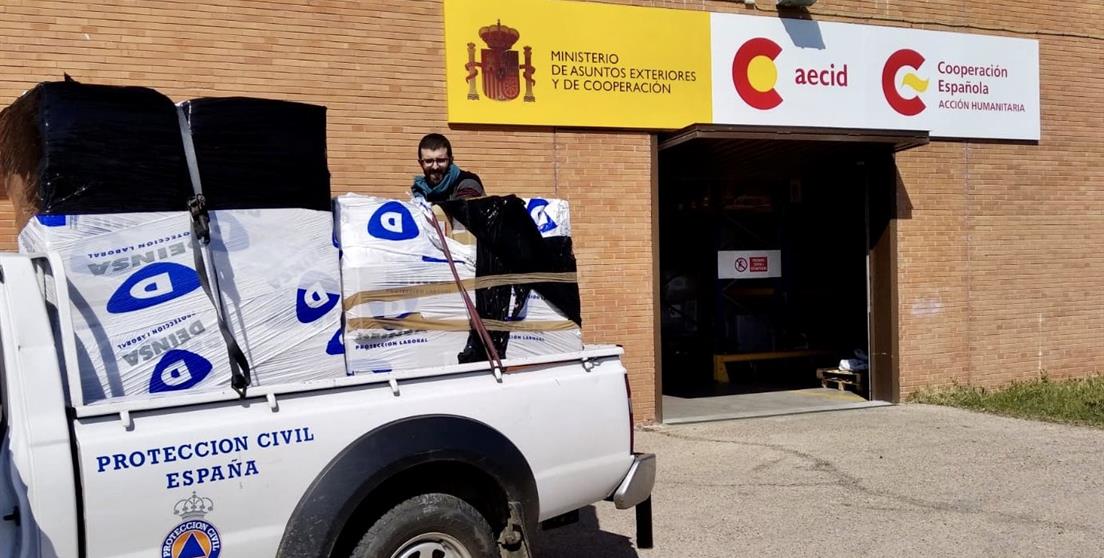 La AECID entrega material de protección para los servicios sanitarios españoles -Se trata de mascarillas, guantes y batas sanitarias -Esta entrega se ha realizado al amparo del estado de alarma...