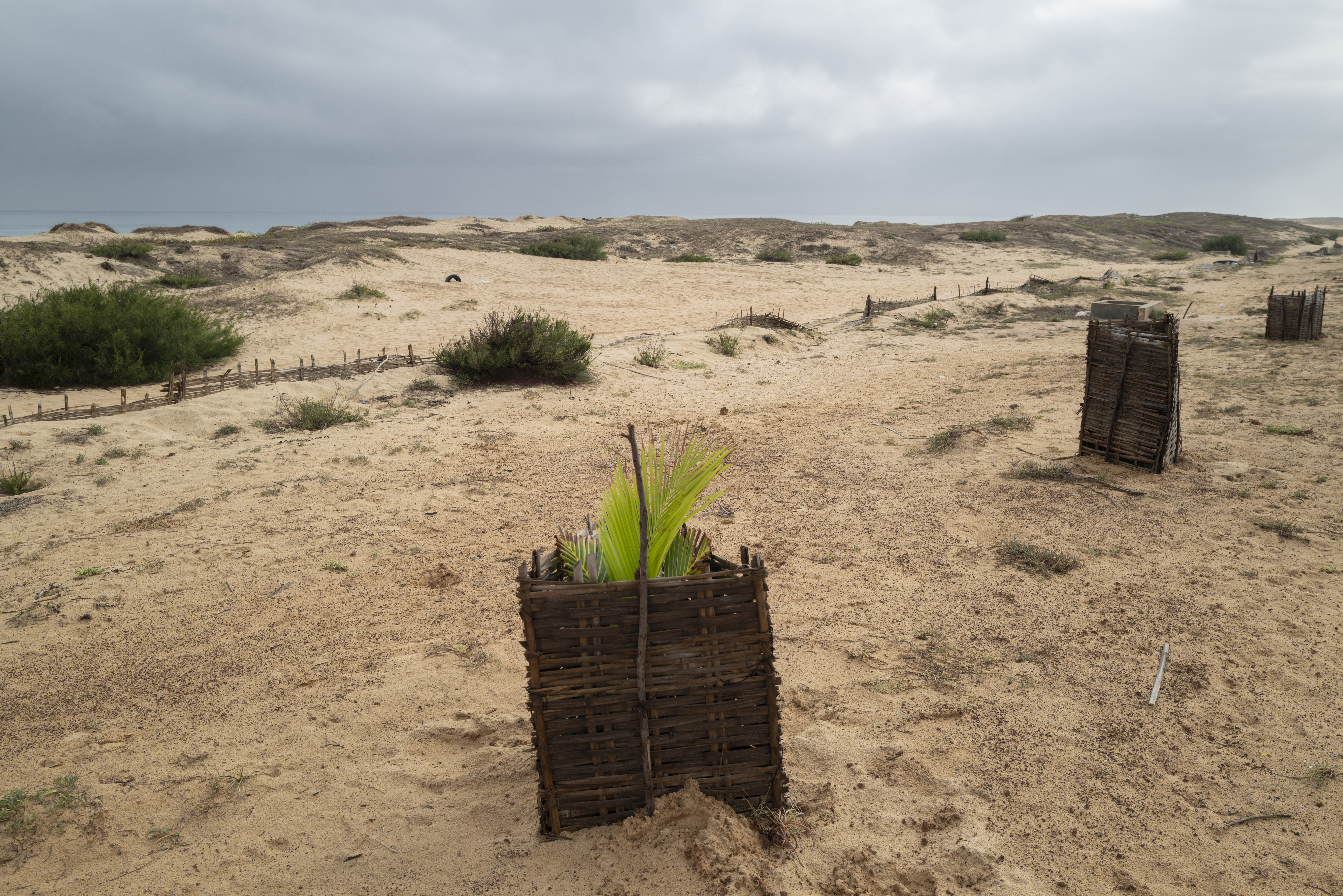 Otro aspecto fundamental a tener en cuenta es la protección física de las zonas repobladas con un vallado vegetal que permita a los jóvenes ejemplares crecer sin ser golpeados por el viento que en muchas ocasiones sopla con intensidad en esta fachada costera. Ello implica, a su vez, una cierta vigilancia del lugar dado que uno de los problemas a los que se enfrenta este sistema es los robos por parte de desaprensivos.